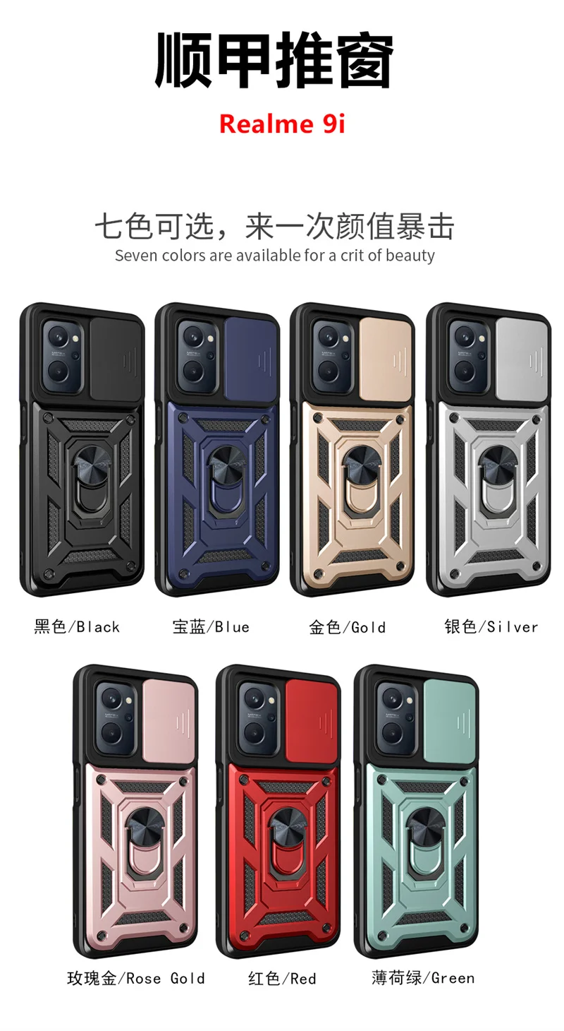 For Realme9i RMX3491 6.6"Case Slide Camera Lens Protect Phone Case For OPPO Realme 9i 9 i Armor Magnet Ring Kickstand Back Cover